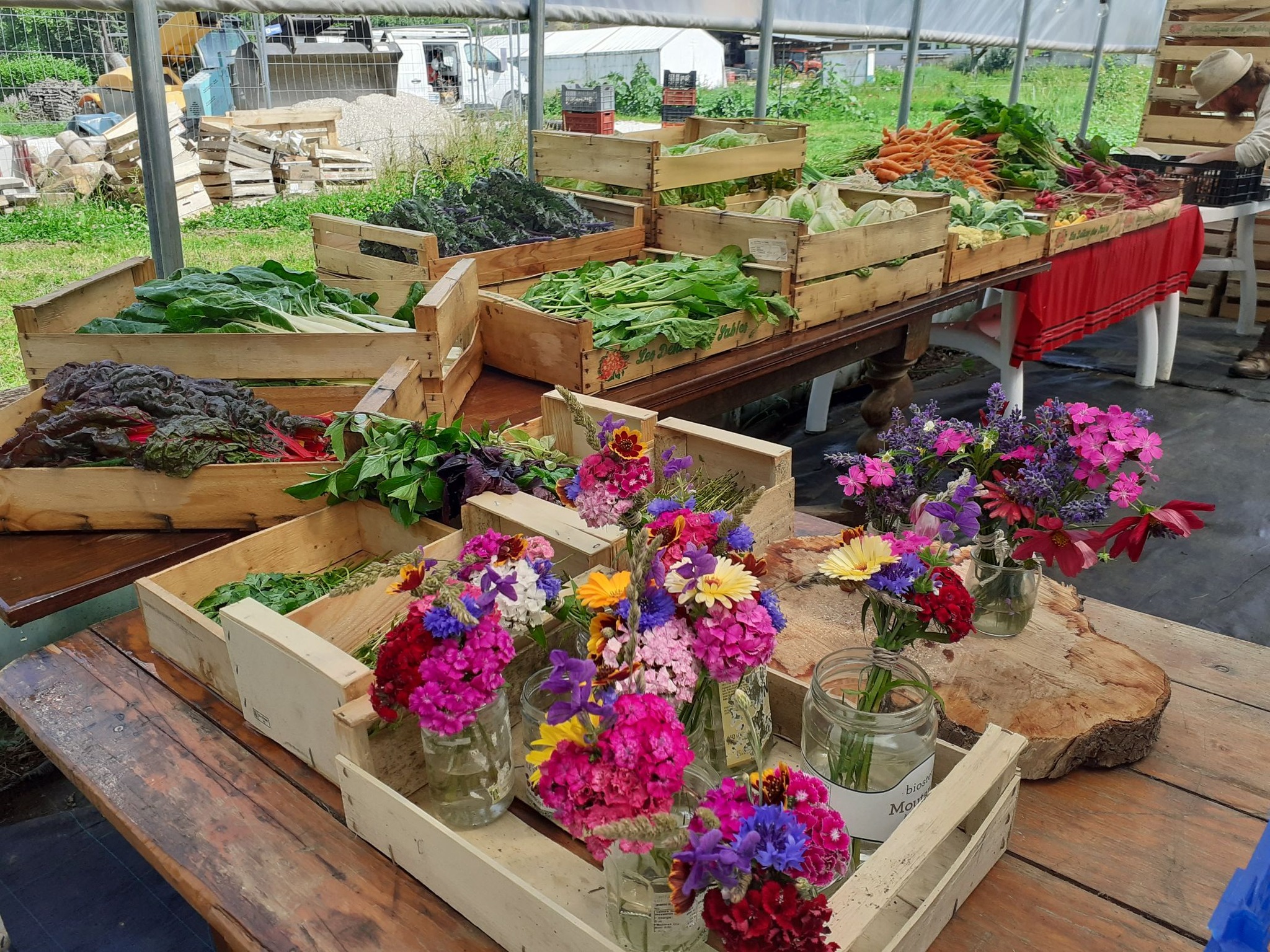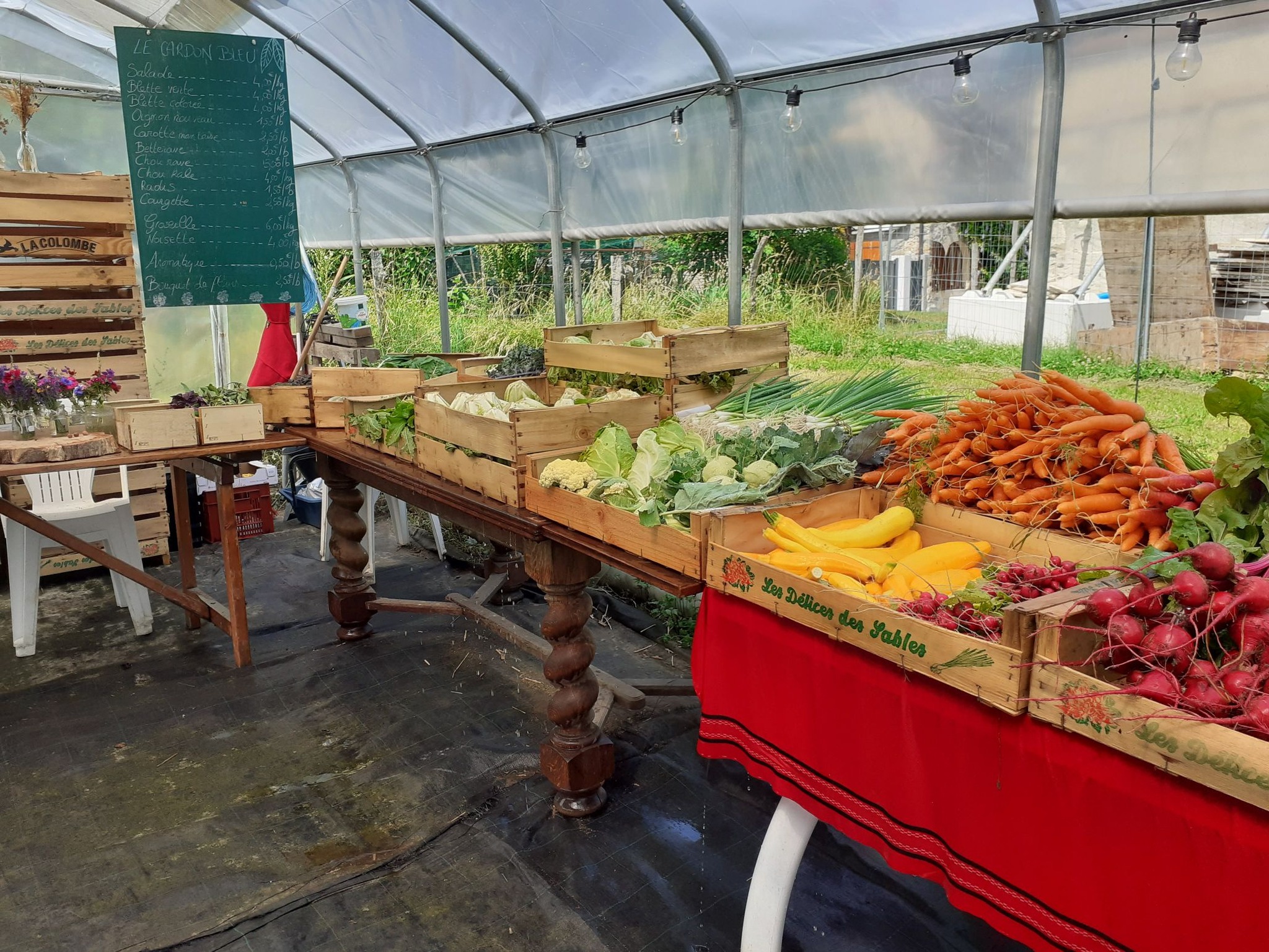 Important : même pendant le chantier de rénovation de la grange, le marché à la ferme EST OUVERT 🙂 !