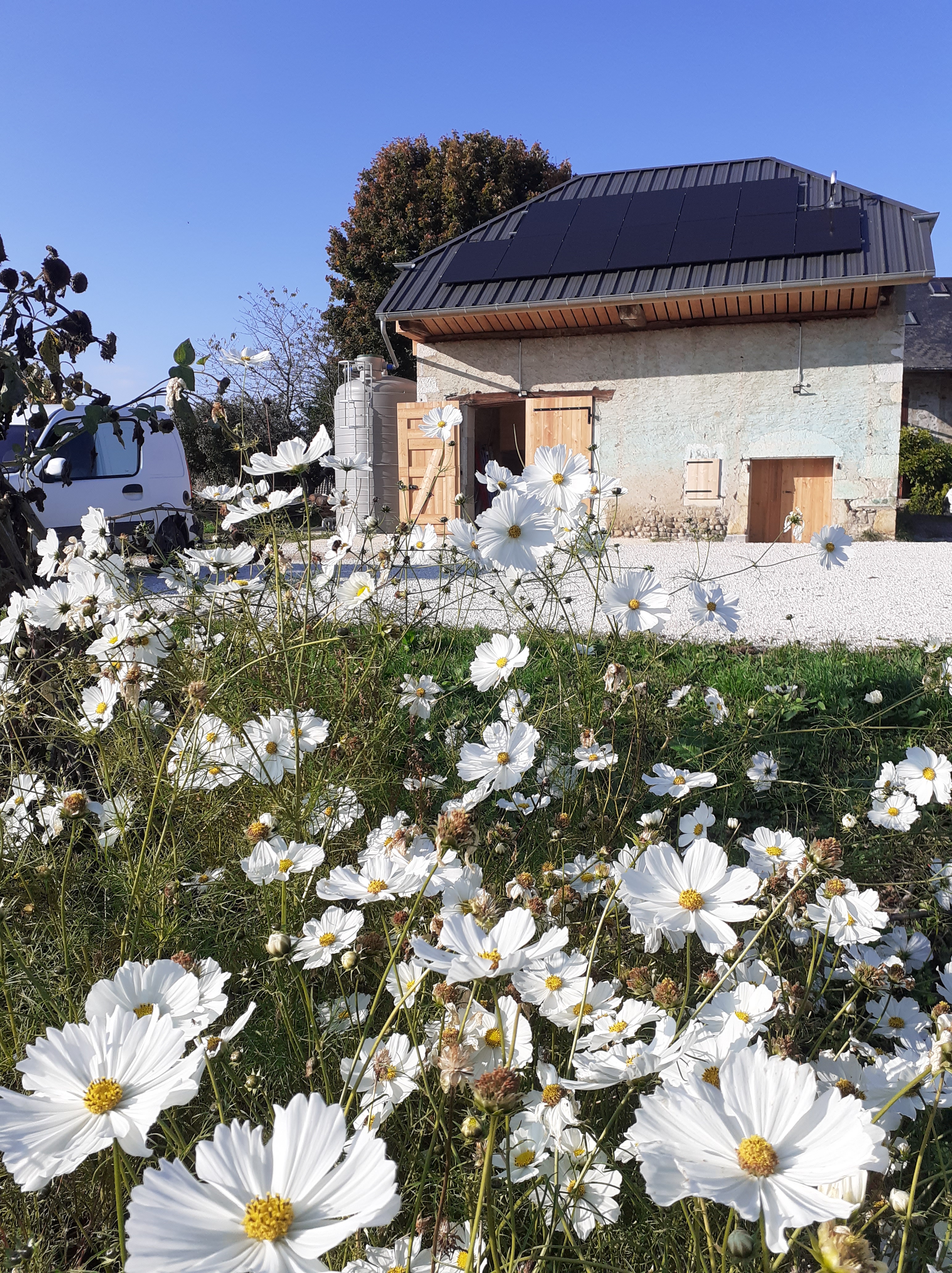 Un tunnel pépinière, une grange, trois tunnels maraîchers, une serre de vente de plants, 5 jardins maraîchers, un verger, des haies de petits fruits, une grange, pour produire des légumes, des fleurs sauvages & cultivées, des fruits, des aromatiques et des plants diversifiés, locaux, bio, de saison en vente direct.